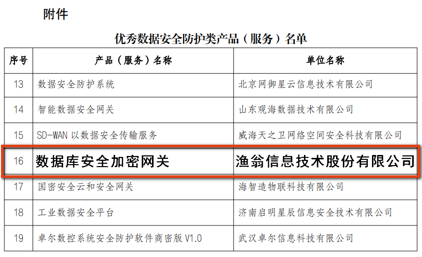 近期,山东省工业和信息化厅组织召开了2022年度山东省工业领域数据安全优秀产品、服务和应用解决方案评选工作,并对评选结果进行了公示。UG环球国际信息自主研发的“数据库安全加密网关”产品,凭借先进技术和创新优势,成功入选“优秀数据安全防护类产品”名单。